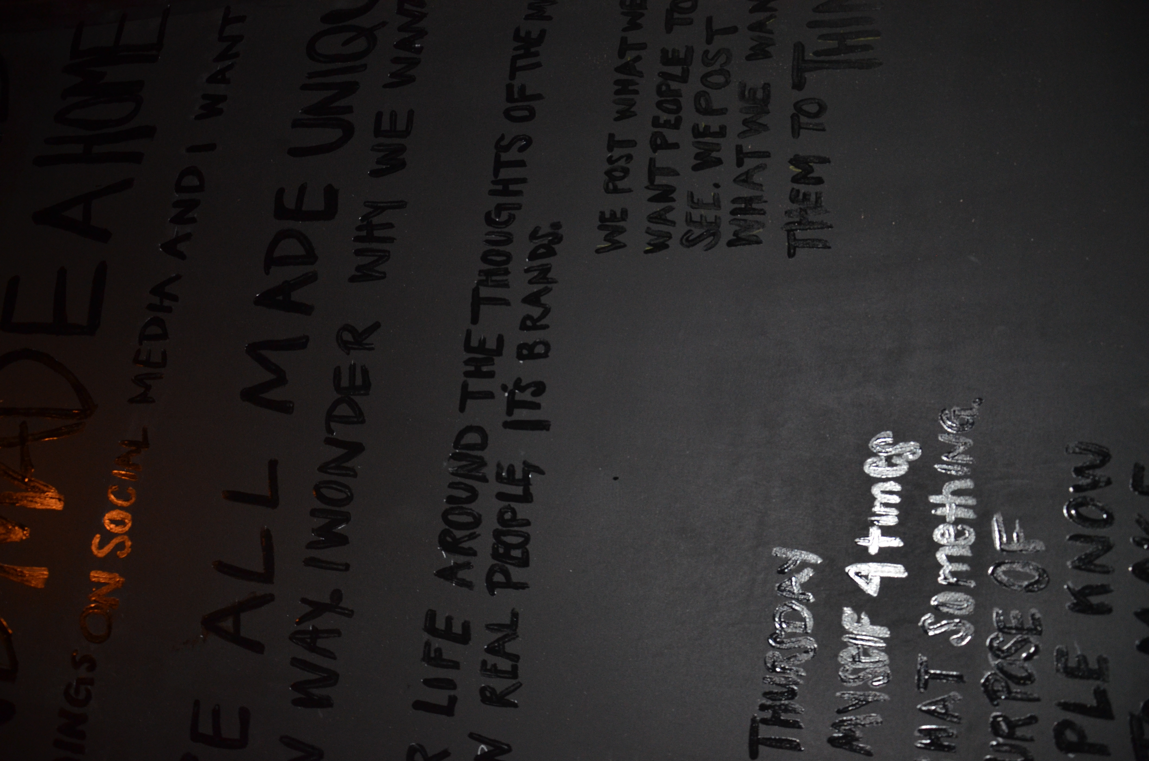 In a world of superficial likes and the constant need to check in, it is my hope that this installation will encourage you to think about your own social media habits and how it might affect your perception of your reality.